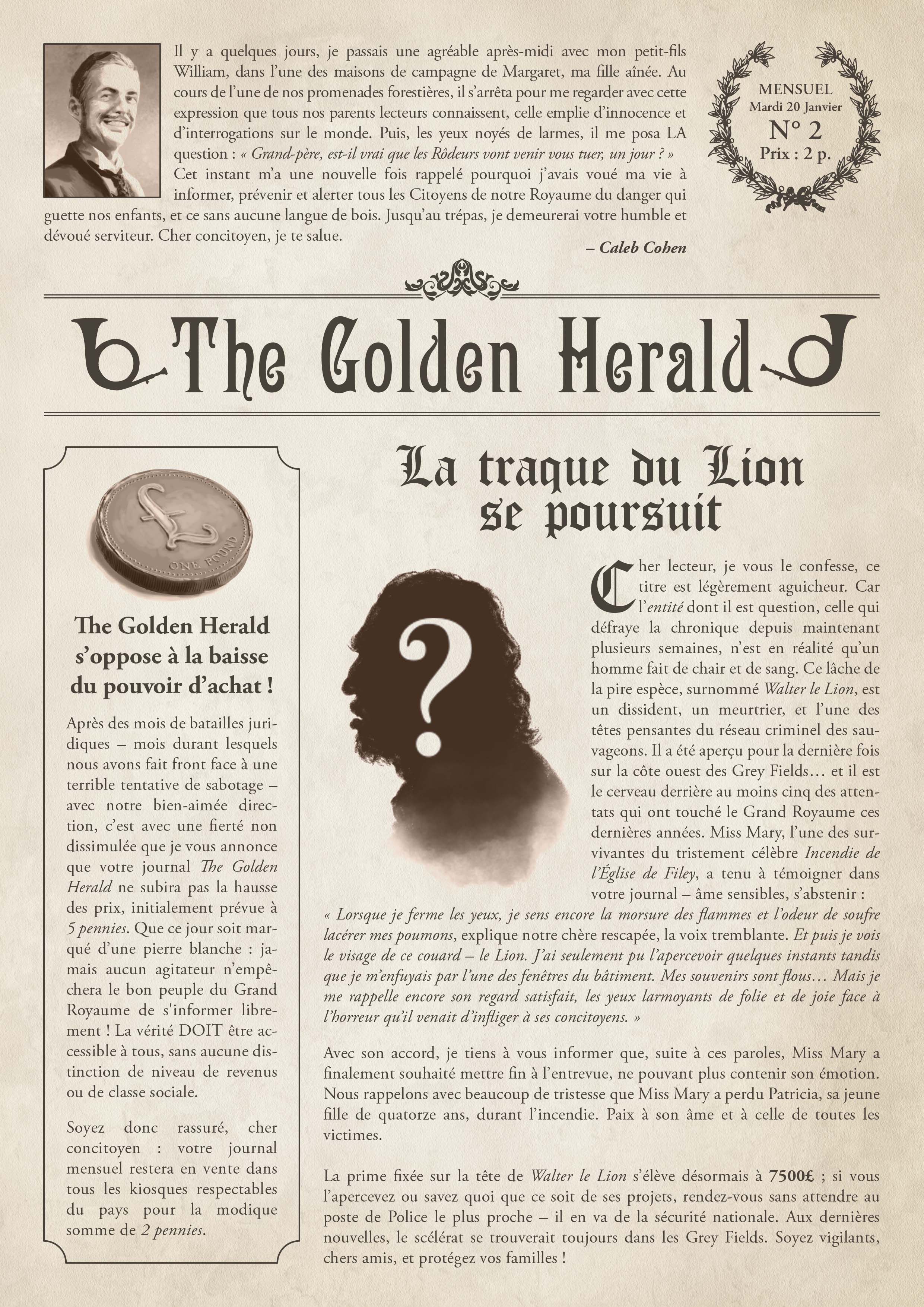 Découvrez le deuxième volume du Golden Herald, le journal de référence au Grand Royaume, coordonné par notre rédacteur en chef, Caleb Cohen.